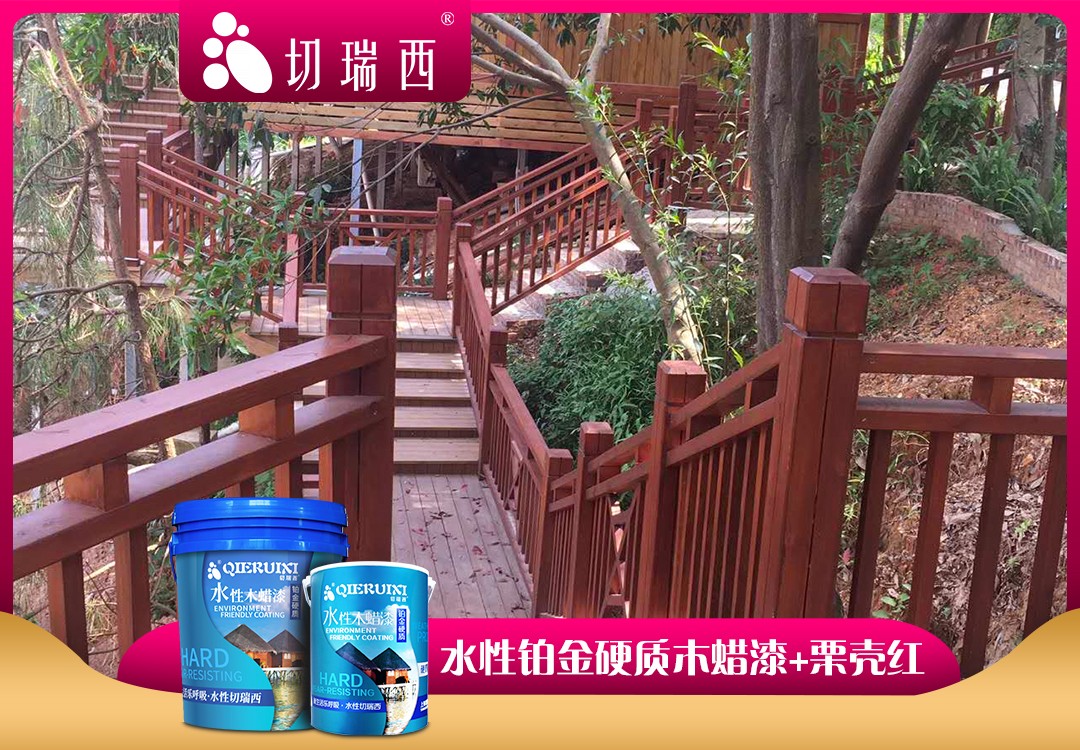 案例介紹:戶外木棧道,涼亭和葡萄架以及家具等都可以使用水性漆進(jìn)行翻新保護(hù)。戶外木制品因?yàn)槭盏斤L(fēng)吹日曬雨淋的侵蝕和風(fēng)化,需要打磨后才能進(jìn)行施工。水性漆干燥速度塊,漆膜飽滿豐厚,可以防水防腐,保護(hù)木制品不受自然風(fēng)雨的侵蝕。施工時(shí)可以選擇刷涂或者噴涂,如有需要可以加水稀釋,比例不能超過8%。